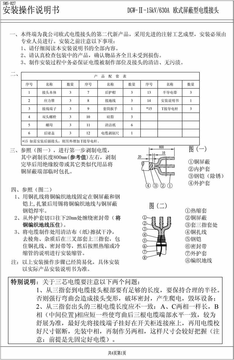 DGWII-15kV630A電纜頭安裝說(shuō)明書(shū)